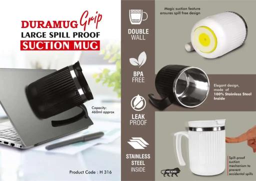 The 460ml Suction Mug Spill-Proof Design is a smart, modern drinkware solution crafted for professionals, commuters, and everyday users. Its innovative suction base prevents accidental spills, keeping your desk, documents, and devices safe. With a double-wall insulated stainless-steel interior, it maintains drink temperature for longer while ensuring durability and hygiene. BPA-free construction and a premium grip-friendly exterior make it ideal for offices, home, travel, and branding gifts.