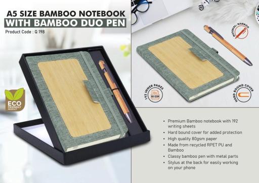 A5 Size Bamboo Notebook with Bamboo Duo Pen